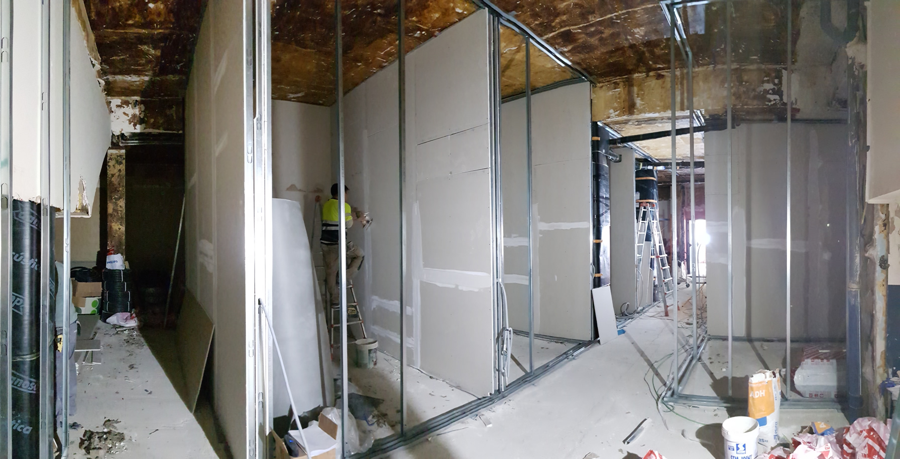 Se utiliza en paredes (tabiques y trasdosados), techos y suelos a base de placas de Yeso Laminado que consiguen un menor espesos y un aislamiento acústico y térmico elevado. El montaje es rápido y limpio, sin producir apenas escombro. Con las placas de Yeso Laminado se puede llegar a diseñar locales, de maera que el acondicionamiento acústico no sea un problema.
